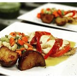 Fresh mozzarella cheese, roasted peppers & tomatoes.